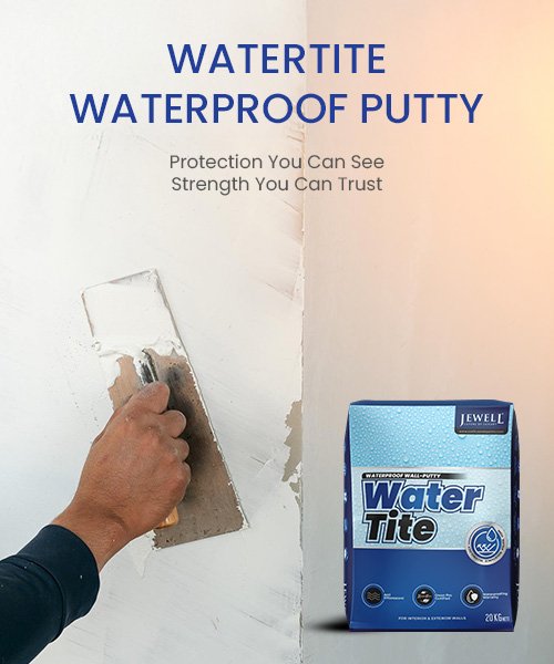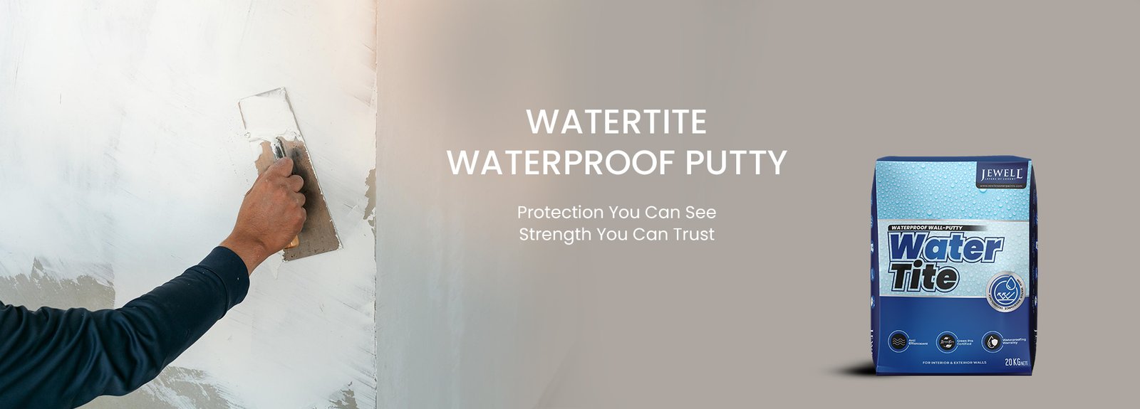 Watertite Waterproof Wall Putty is a premium, cement-based powder putty engineered with silicone and anti-efflorescence additives to provide true waterproofing plus a butter-smooth finish. Its formulation gives unique resistance to efflorescence and damp staining, extending the life and beauty of the topcoat significantly beyond ordinary white cement putties.