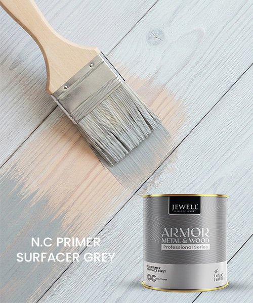 NC Primer Surfacer Grey is a fast‑drying nitrocellulose‑based primer surfacer formulated with alkyd resin and high‑quality grey pigments to level and prepare interior wood and metal substrates. The matt coating offers good hiding power, excellent adhesion on plywood, MDF, solid wood and fabricated metal, and very good grain filling that helps mask surface imperfections.