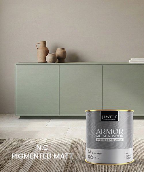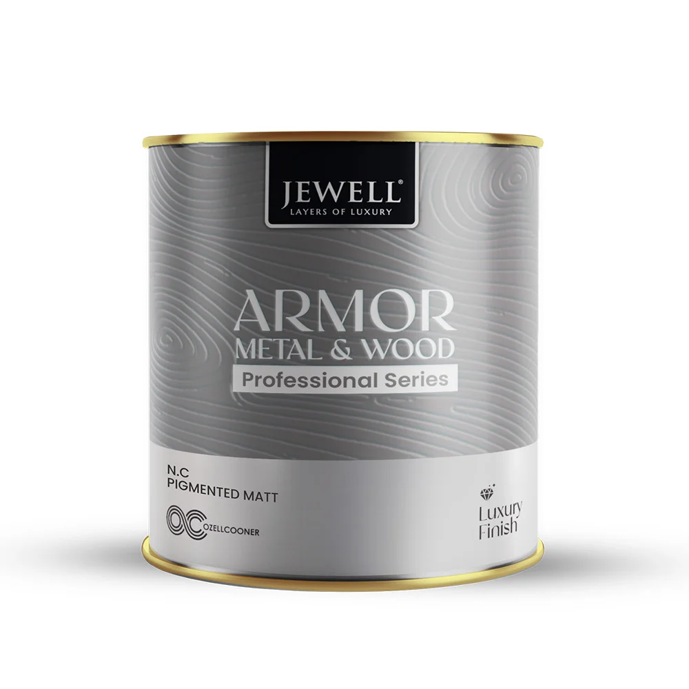 NC Pigmented Matt is the matt counterpart to Jewell NC Pigmented Color, giving a smooth, low‑sheen finish with strong color coverage on interior wood and metal. The nitrocellulose‑based, non‑yellowing single‑pack system forms a hard, durable film that hides surface imperfections better than gloss, making it ideal for wardrobes, doors, furniture and fixtures in contemporary interiors.
