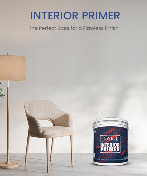 Fortified with fungicides, the primer offers resistance to wall alkalinity, moisture and fungus, helping prevent early paint failure such as flaking and patchy absorption on new plaster. It is low VOC, solvent-free and quick-drying, making it safer and faster to work with in enclosed interiors. Applied by brush or roller after proper surface preparation, it delivers coverage of about 180–240 sq.ft per litre per coat on well-prepared surfaces, with a recoat interval of 2–4 hours. Interior Primer is recommended under all Jewell interior emulsions to enhance finish, durability and overall value.