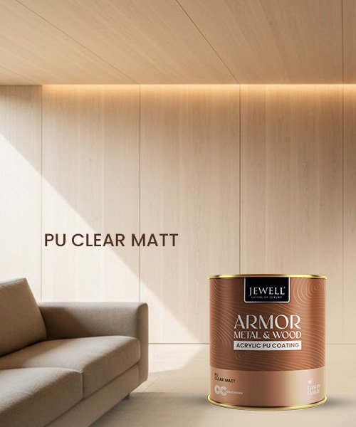 Ideal for wardrobes, doors, paneling, furniture and decor where glare-free sophistication is desired, it behaves like a durable shield against daily wear and tear yet feels soft and refined to the touch. The coating lasts roughly twice as long as regular alkyd varnish and far longer than local French polish, maintaining clarity and colour stability over time. Supplied as a 2-pack (base and hardener), it is mixed in a 9:1 ratio, thinned with Jewell Premium Grade Melamine Thinner and offers good coverage with around 30–35 microns dry film per coat on properly prepared wood.