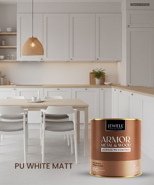 PU White Matt is a two-component pigmented polyurethane topcoat that delivers a rich, sophisticated matt white finish for premium interior furniture and joinery. This anti-scratch grade system combines high solids with fast drying, very good levelling and flow, creating a smooth, velvety surface on wardrobes, doors, paneling and cabinets.