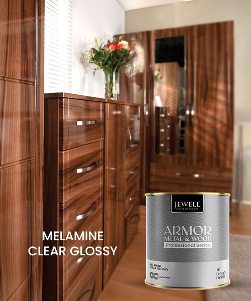 This clear glossy melamine behaves like a protective shield against daily wear and tear on wardrobes, tables, doors, paneling and premium cabinetry. It provides superior stain and scratch resistance while maintaining a smooth, rich, glass-like appearance that enhances the natural beauty of the substrate. Used over Jewell Melamine Clear Sealer, it ensures excellent adhesion, long-lasting beauty and a professional finish for high-end interior furniture projects.